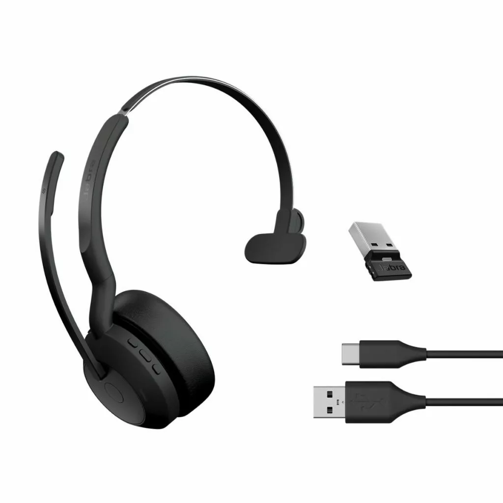 The 55 comes in different variants to suit your needs. Choose between a UC-certified or Microsoft Teams-certified headset in stereo or mono. You also have the option of adding an optional charging stand for convenience and choosing between mono and stereo wearing styles as well as USBA or USBC dongles.