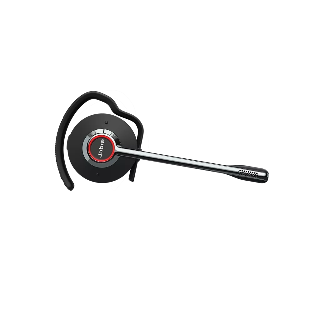 One the annoying things about wearing a wireless headset is that colleagues are never sure if you’re on a call or not, so they will either blunder on in and you have to show them ‘the hand’ or (if they’re a bit more considerate) there’s the ever popular over exaggerated ‘are you on a call?’ mime. Happily Jabra has banished this issue with a built in busy light. On the convertible option there’s a bright busy light on the earpiece which flashes when the headset is on. (On the mono and stereo versions this light is on both the earpiece and on the end of the microphone boom (or arm).