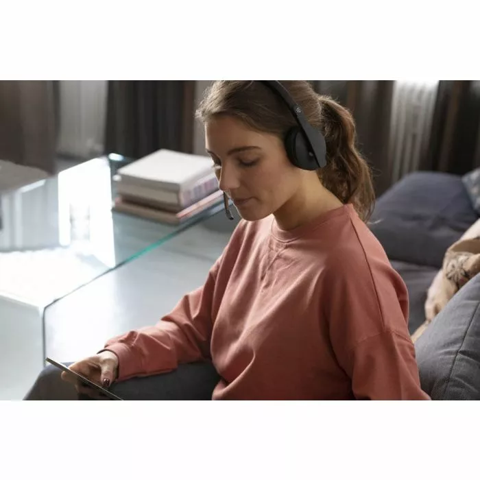 Lightweight, portable and wireless, this flexible audio companion keeps you at peak performance. The boom arm gets you closer to the conversation and folds easily into the headband for a clean, modern look. Focus while listening to music at work with stereo sound and jump straight into virtual meetings via a Microsoft Teams certified or UC optimized solution.