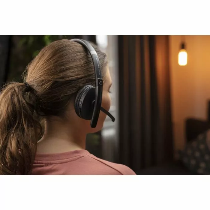 Enjoy up to 27 hours of batery life, comfortable leatherette ear cushions and EPOS Voice technology for more natural listening. The noise-cancelling microphone filters out ambient noise and EPOS ActiveGuard technology helps avoid acoustic shock on calls.