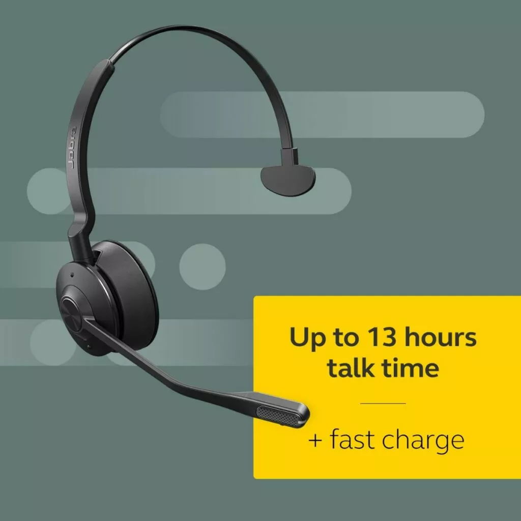 - Engage 65 mono headset provides 13 hours of continuous talk time