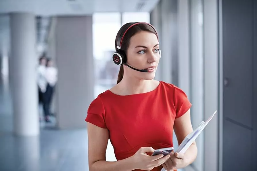 Professional wireless headset with dual connectivity and amazing sound for calls and music.