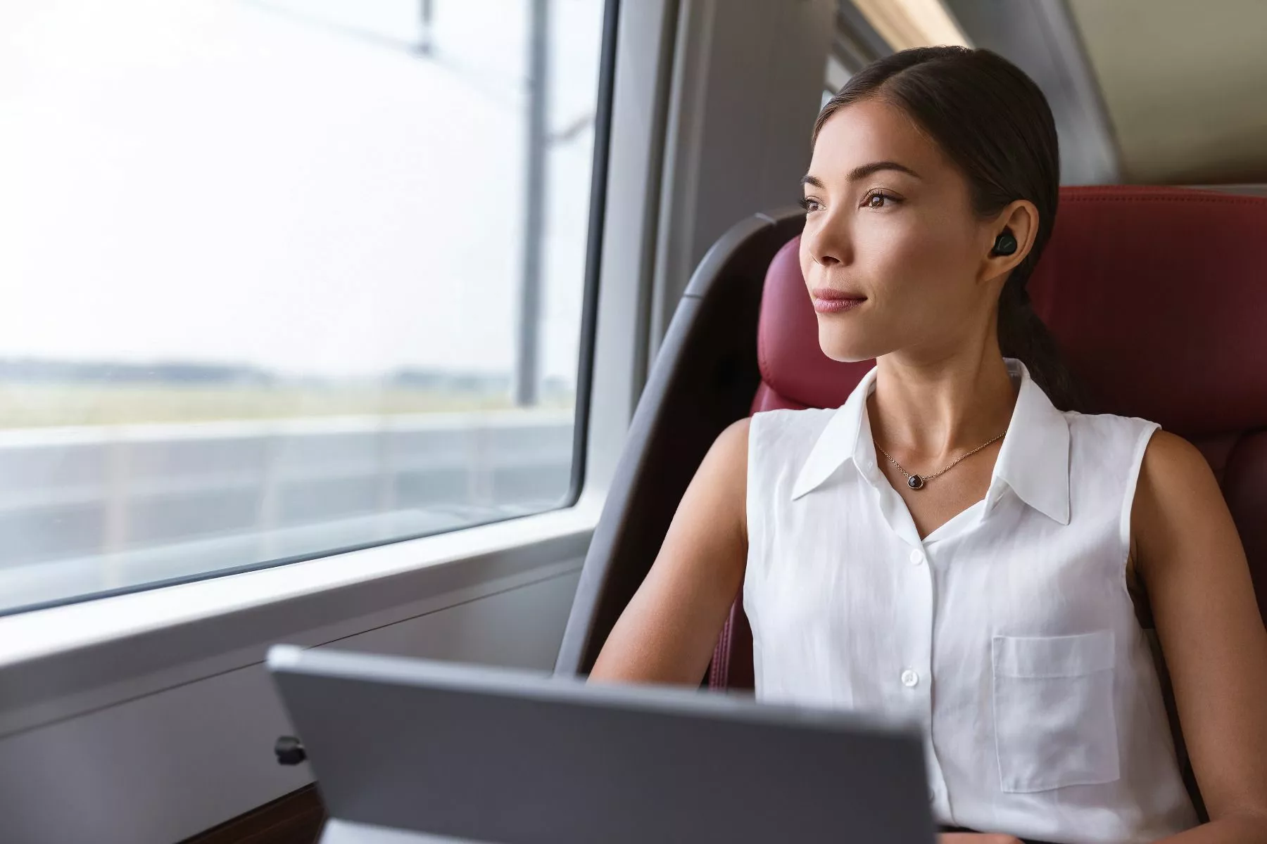 Taking work calls on the go can come with a lot of background noise. Jabra MultiSensor Voice™ uses a clever combination of four microphones, bone conduction sensors, and advanced algorithms, to reduce disruptive background noise. It opens up a lot more