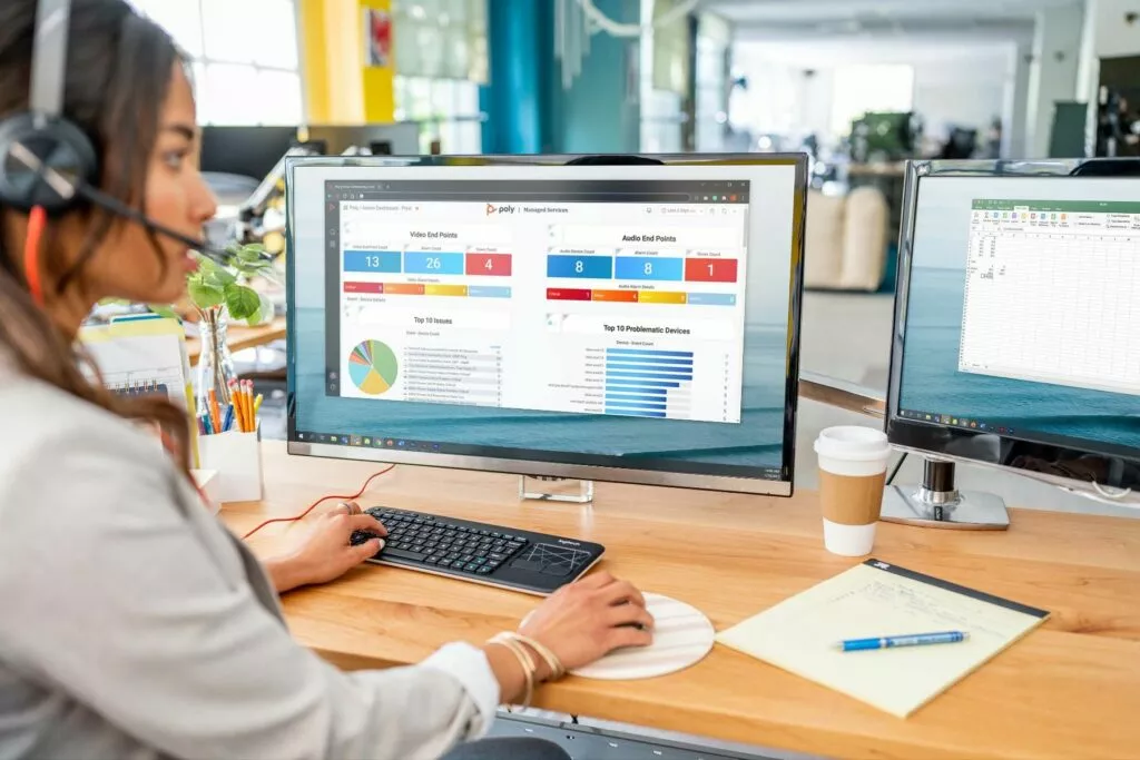 Poly Lens software gives IT teams even more visibility and control over voice, video, and headset devices. Deploy, configure, update, and get valuable insights from one endpoint or thousands using one scalable platform. Poly Lens makes it simple: no heavy IT lifting required.