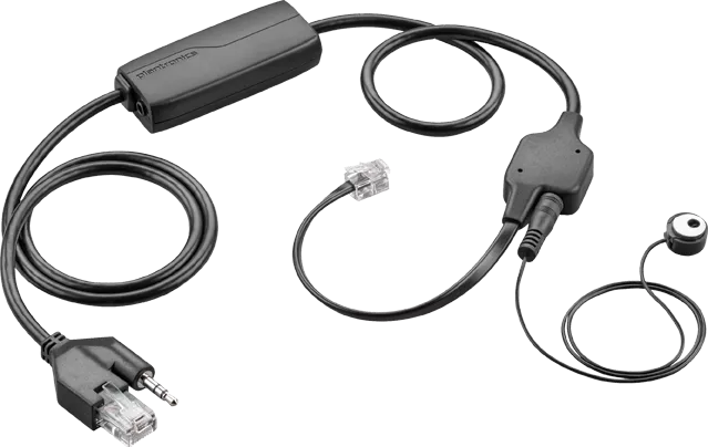 Electronic Hook Switch Cable for remote desk phone call control (answer/end). This cable eliminates the need for a HL10 Handset Lifter. This cable works with Avaya desk phones and may work with additional manufacturers, check with our Product Configurator for more information. Replacement Note: The APV-63 EHS cable replaces the APV-62 cable and features compatibility with the Plantronics On-line Indicator accessory.