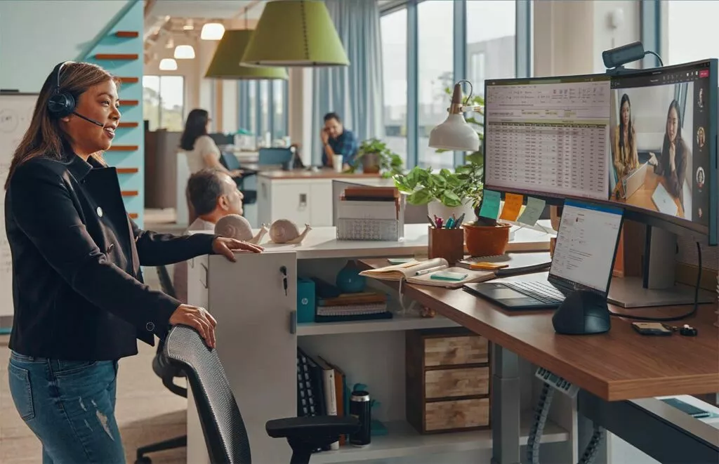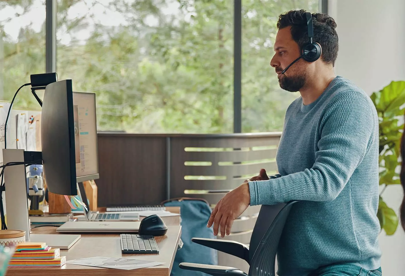 Make sure no one on the call can overhear nearby conversations. With our noise-canceling microphone enhanced with Poly Acoustic Fence technology, that meets the Microsoft Teams Open Office specification, private conversations stay private.