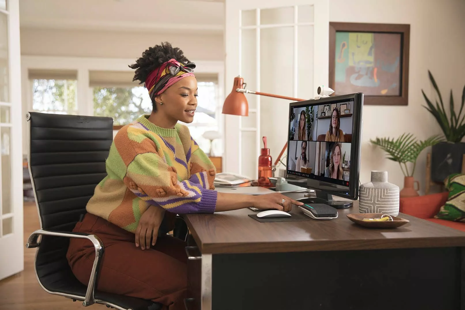 Stay in control with easy-to-use, touch-sensitive controls and clear LED indicators. The highly visible light bar lets you know the call status, even from a distance. The integrated USB cable not only powers the unit, but allows you to join meetings in an instant, even with a flat battery.