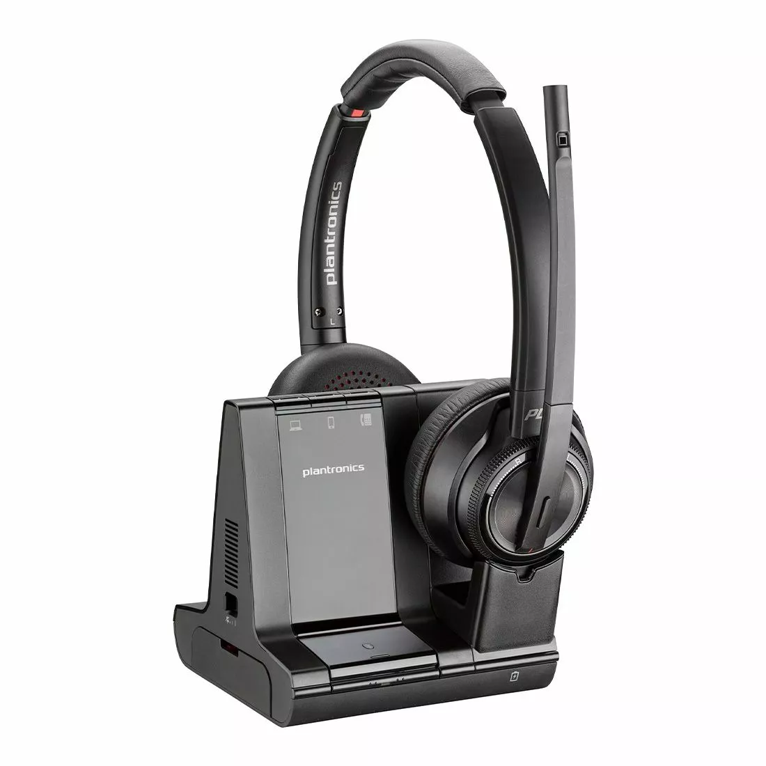 – Voyager 5200 Office Series two-way base connects to your desk phone via