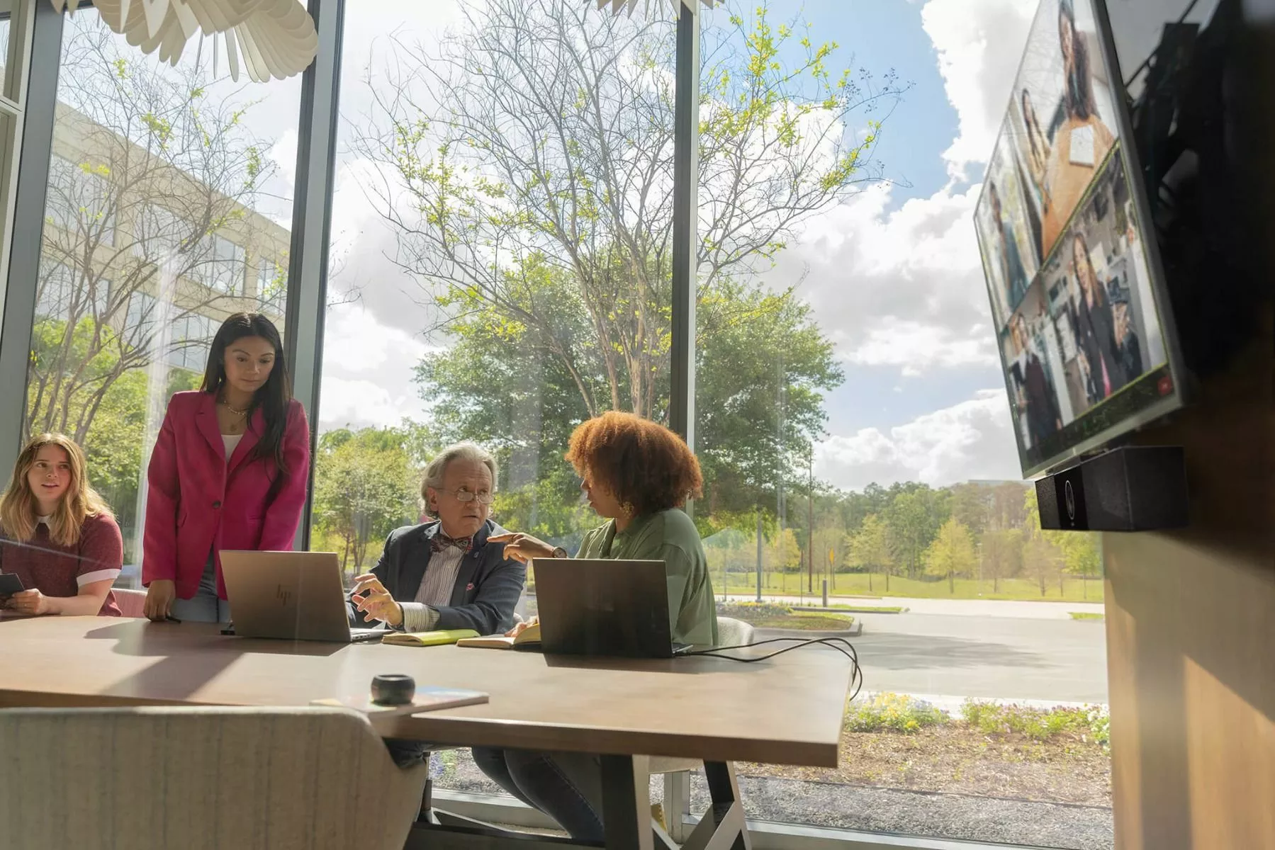 Make the connection personal: Group framing and automatic speaker tracking are built right in, thanks to Poly DirectorAI technology. No drivers or software are needed. Everybody on the video call can see the important details — right down to body language and facial expressions. And with Presenter Mode, the camera follows the presenter as if there were a camera operator in the room.